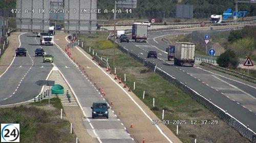 Accidente de camión provoca corte en la A-4 en Bailén, Jaén, con una persona herida.