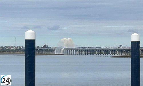 Fuga en el Puente Sifón de Huelva genera espectacular géiser urbano.