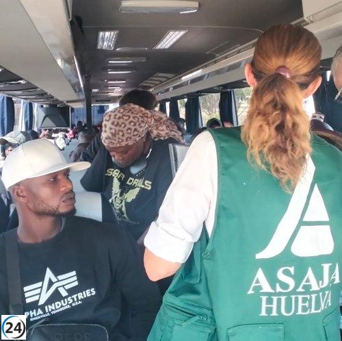 Primera oleada de trabajadores senegaleses comienza su labor en la campaña agrícola de Huelva, gracias a Asaja y Freshuelva.