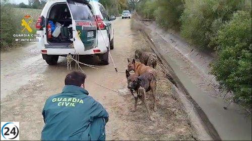 Tres perros son salvados de una acequia en Dos Hermanas mientras la Guardia Civil investiga a sus propietarios.