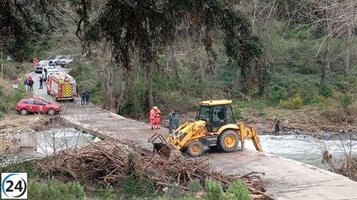 Un perro de rescate se suma a la búsqueda del motorista arrastrado en el río Genal, Pujerra (Málaga).